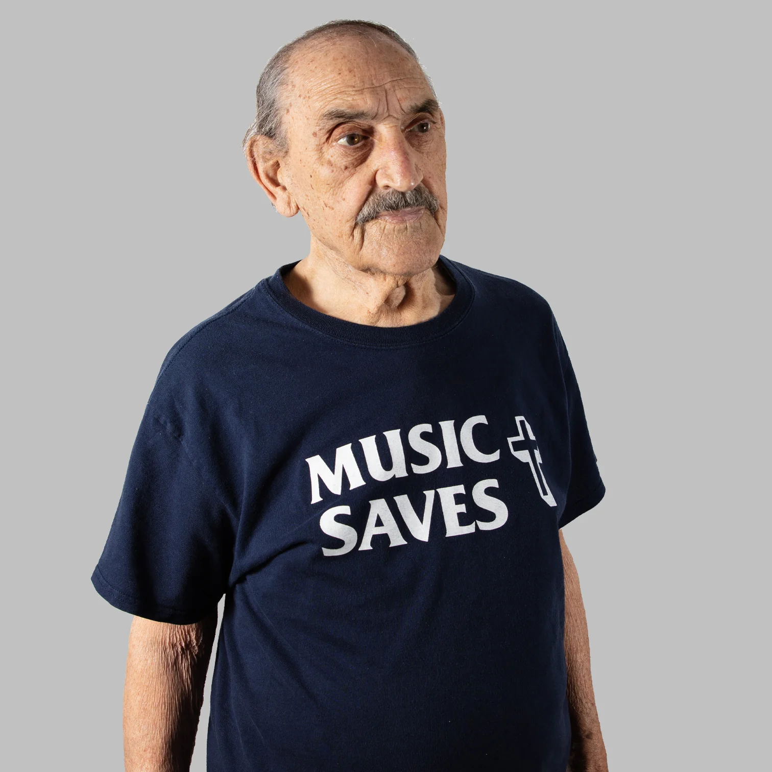 Designed at Microdot in 1995, originally as a bumper sticker featured on The Verve album 'A Northern Soul', the 'Music Saves' logo is applied here by Microdot for the first time to a t shirt.